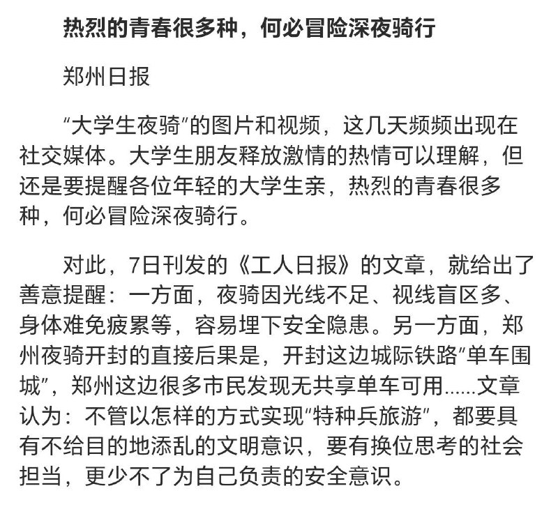 河南大学生夜骑开封被叫停。